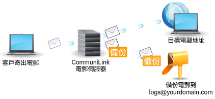 客戶端只需使用 CommuniLink 的 SMTP,不需作出任何電郵設定,電郵系統便亦會將所有外寄的郵件複製一個備份,傳送至指定的備份電郵信箱,讓客戶可以在該信箱內查閱帳戶內的外寄郵件,方便簡單。 除監控功能外,還有甚麼用途?
